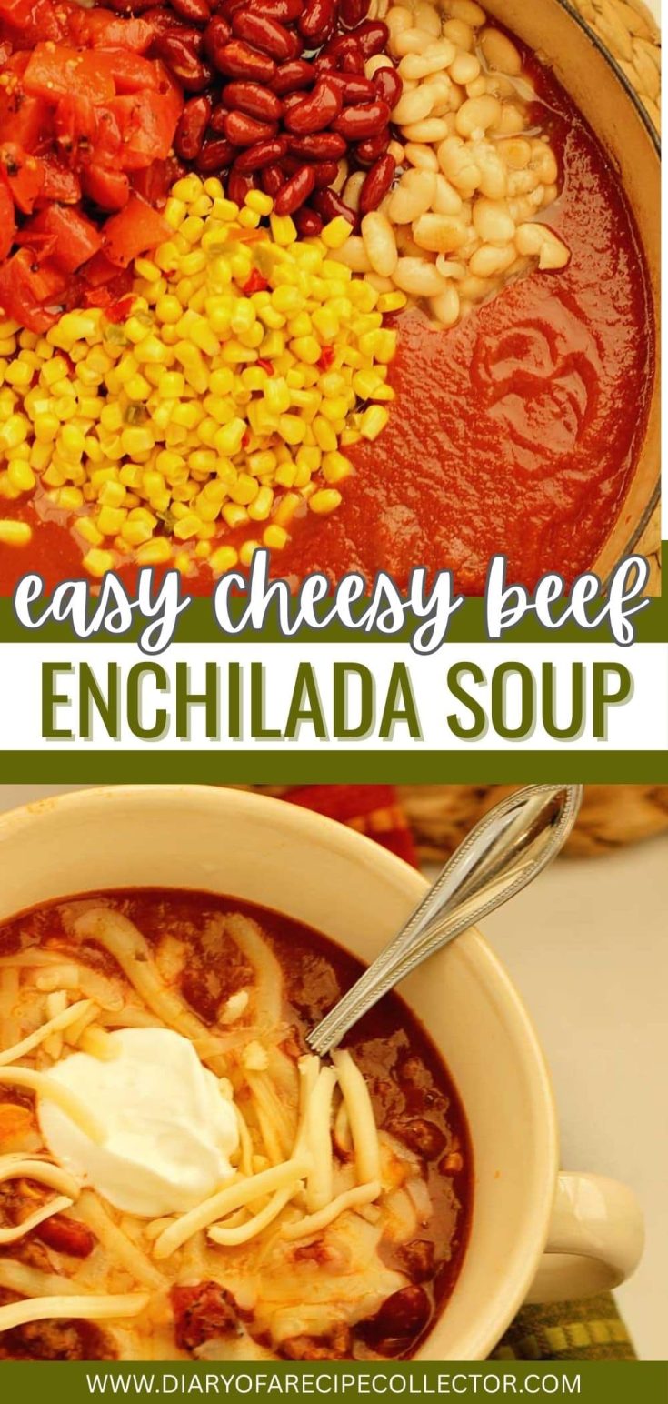 A delicious and hearty soup filled with ground beef, enchilada sauce, beans, tomatoes, and corn easy enough for a weeknight.
