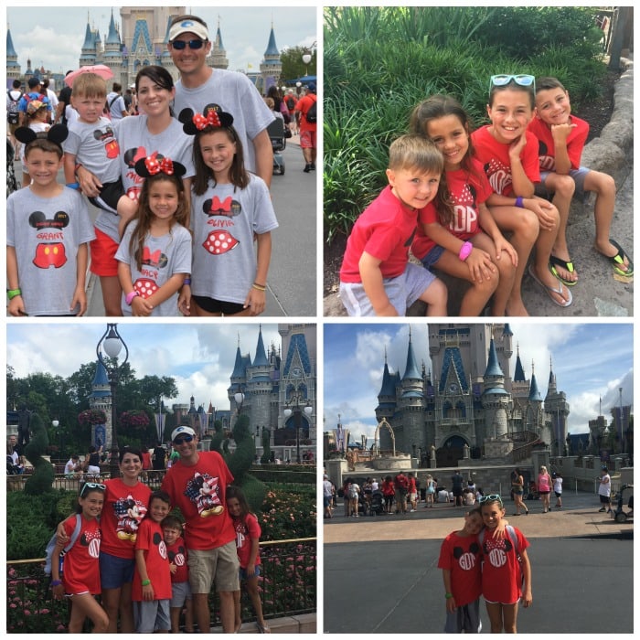 Pirate Night!! And as you tell by our lovely family photo, someone was not happy. She wanted to wear that Tinkerbell costume, but she was beyond exhausted that night. That girl needs her sleep, and we were so busy the whole time. She just wasn’t getting it. We sat down to dinner with the meltdown continuing. I finally talked her into going back to room to change into her t-shirt like the rest of us, and she was good after that. Our t-shirts came from this Etsy shop.