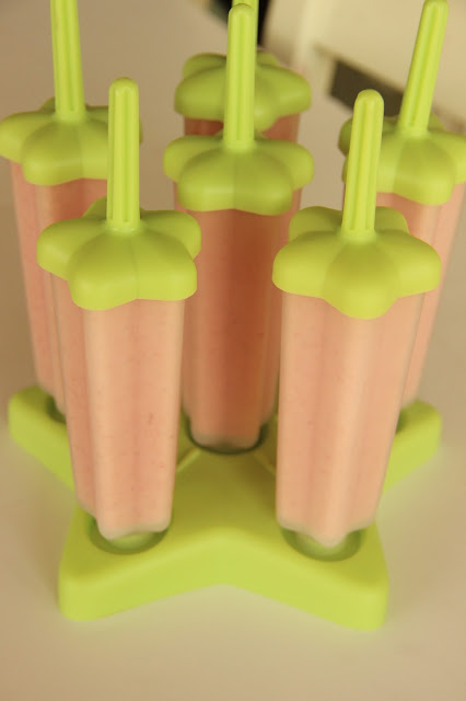 Blend all ingredients in blender. Pour into popsicle molds. Freeze for at least 4 hours. I run them under warm water to help loosen them from the mold.
